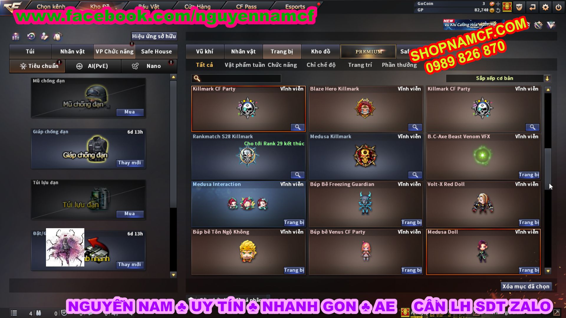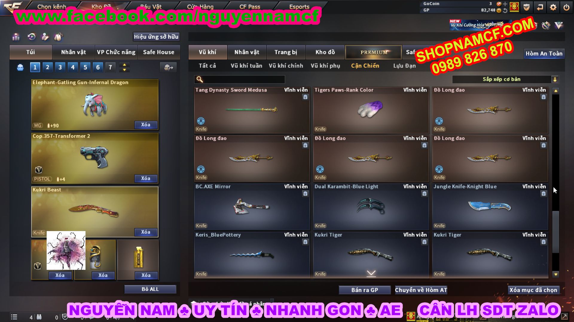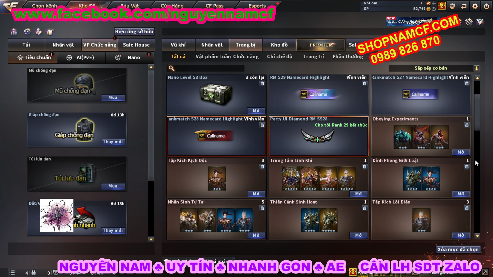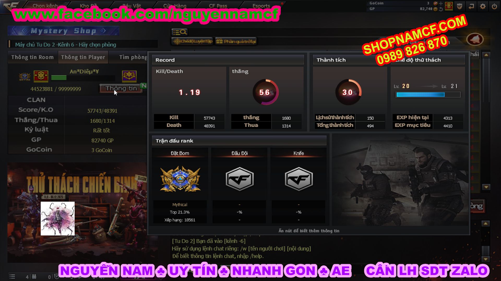 SHOPNAMCF.COM - Shop acc cf Chuyên bán ACC game Liên Quân, Đột Kích và có phần Thử Vận May nếu may mắn quý khách sẽ có cơ hội nhận được acc vip. Shop giao dịch hoàn toàn tự động 24/24, với đội CHKH nhiệt tình và thân thiện sẽ làm hài lòng quý khách.