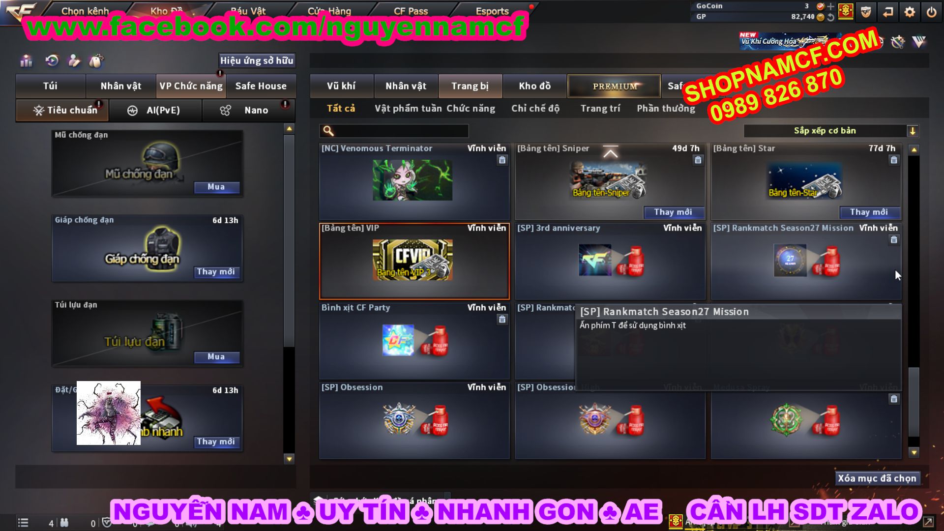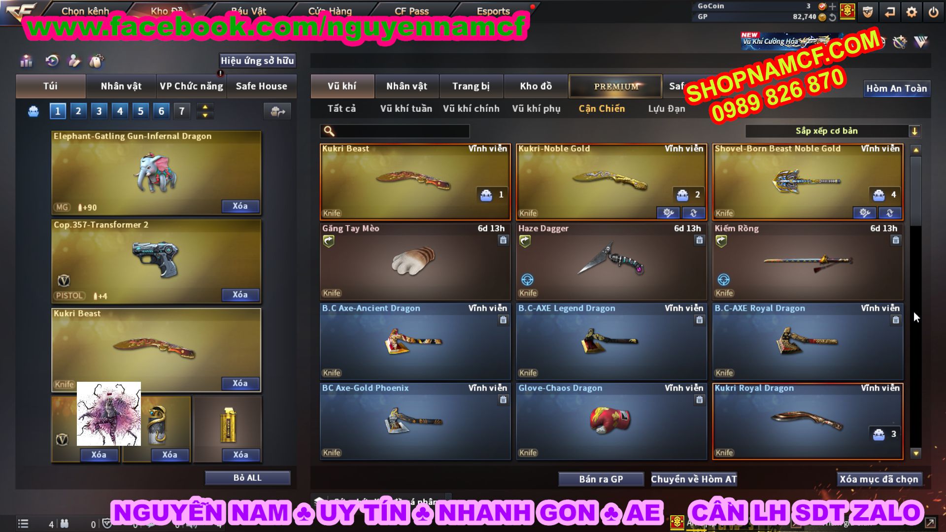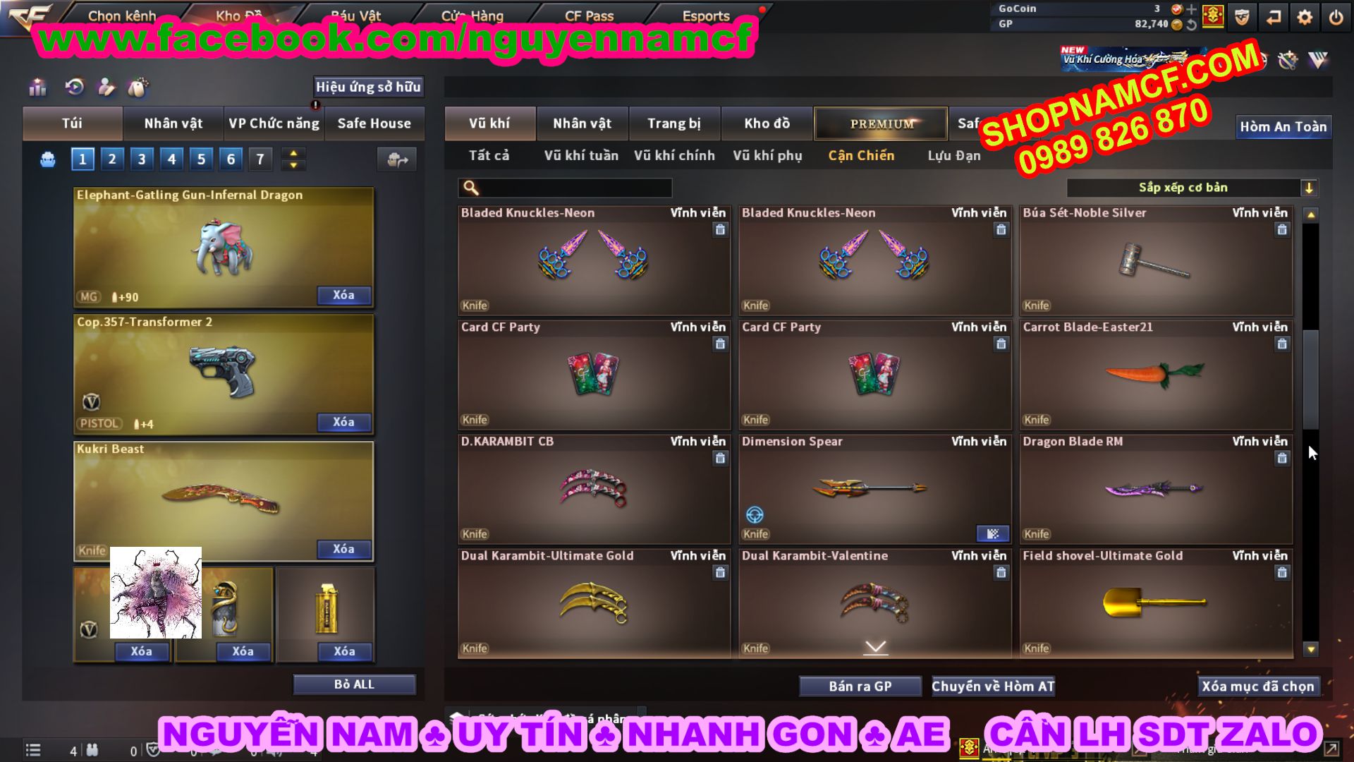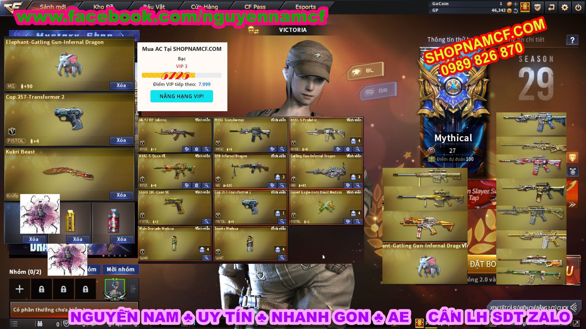 SHOPNAMCF.COM - Shop acc cf Chuyên bán ACC game Liên Quân, Đột Kích và có phần Thử Vận May nếu may mắn quý khách sẽ có cơ hội nhận được acc vip. Shop giao dịch hoàn toàn tự động 24/24, với đội CHKH nhiệt tình và thân thiện sẽ làm hài lòng quý khách.