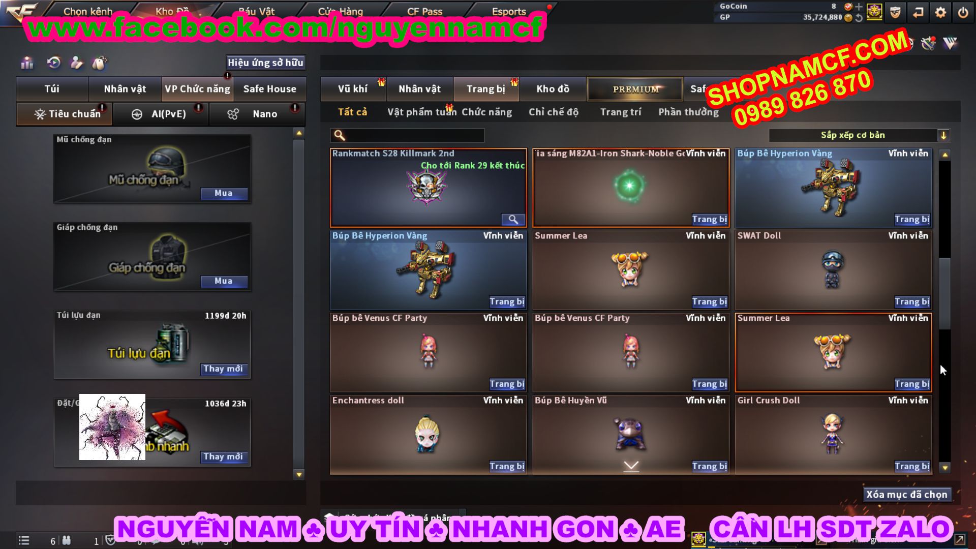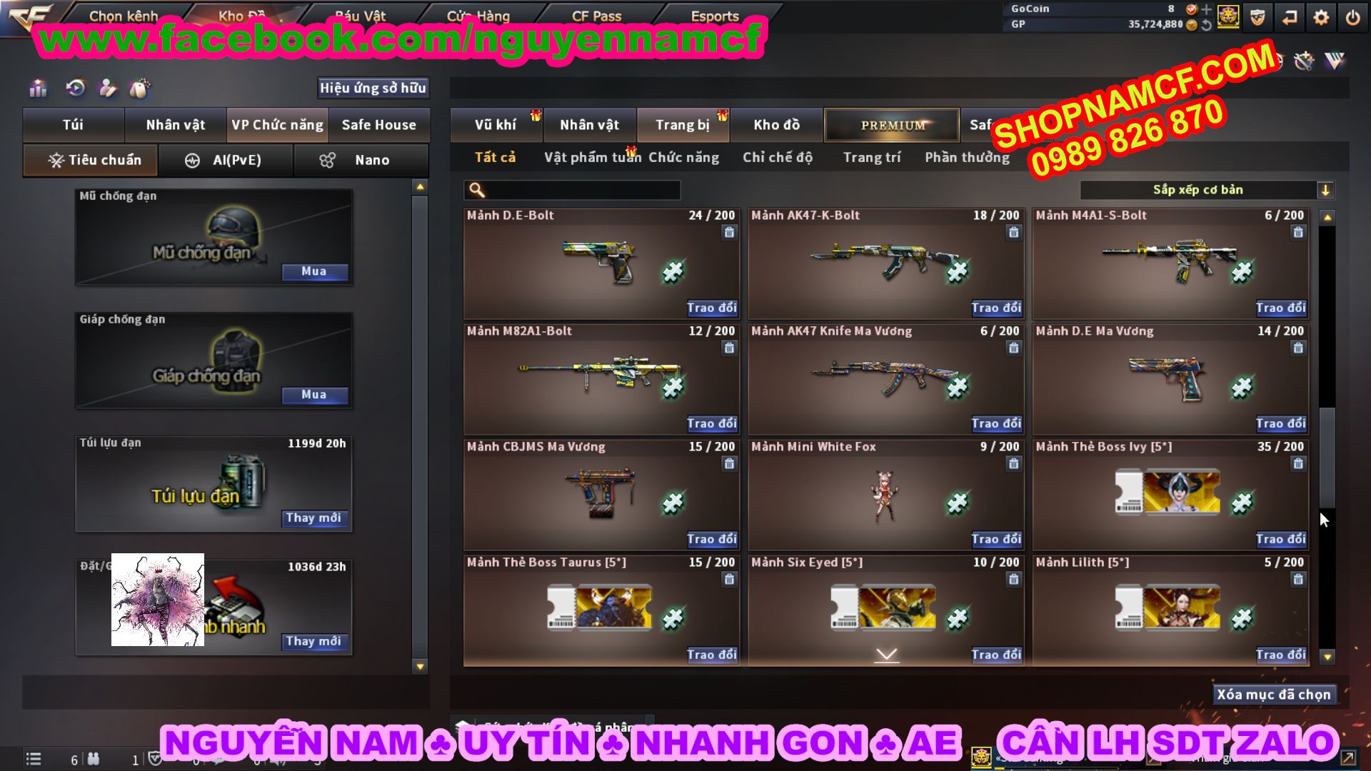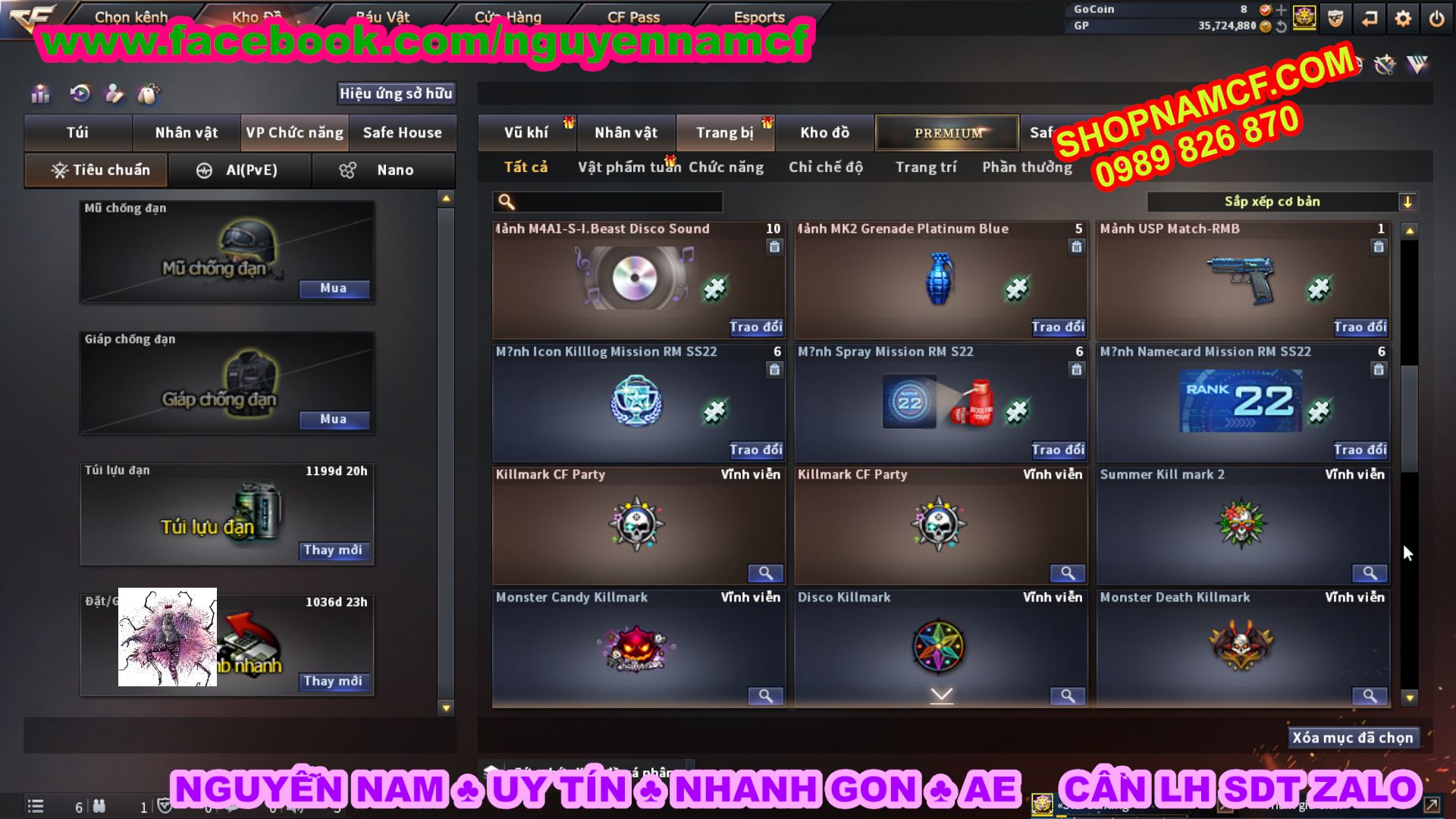 SHOPNAMCF.COM - Shop acc cf Chuyên bán ACC game Liên Quân, Đột Kích và có phần Thử Vận May nếu may mắn quý khách sẽ có cơ hội nhận được acc vip. Shop giao dịch hoàn toàn tự động 24/24, với đội CHKH nhiệt tình và thân thiện sẽ làm hài lòng quý khách.