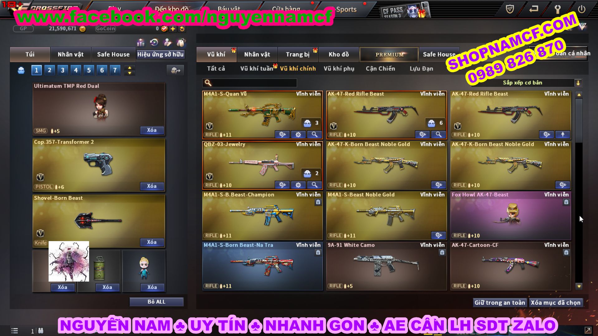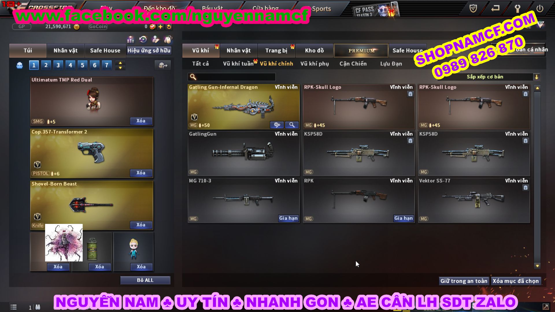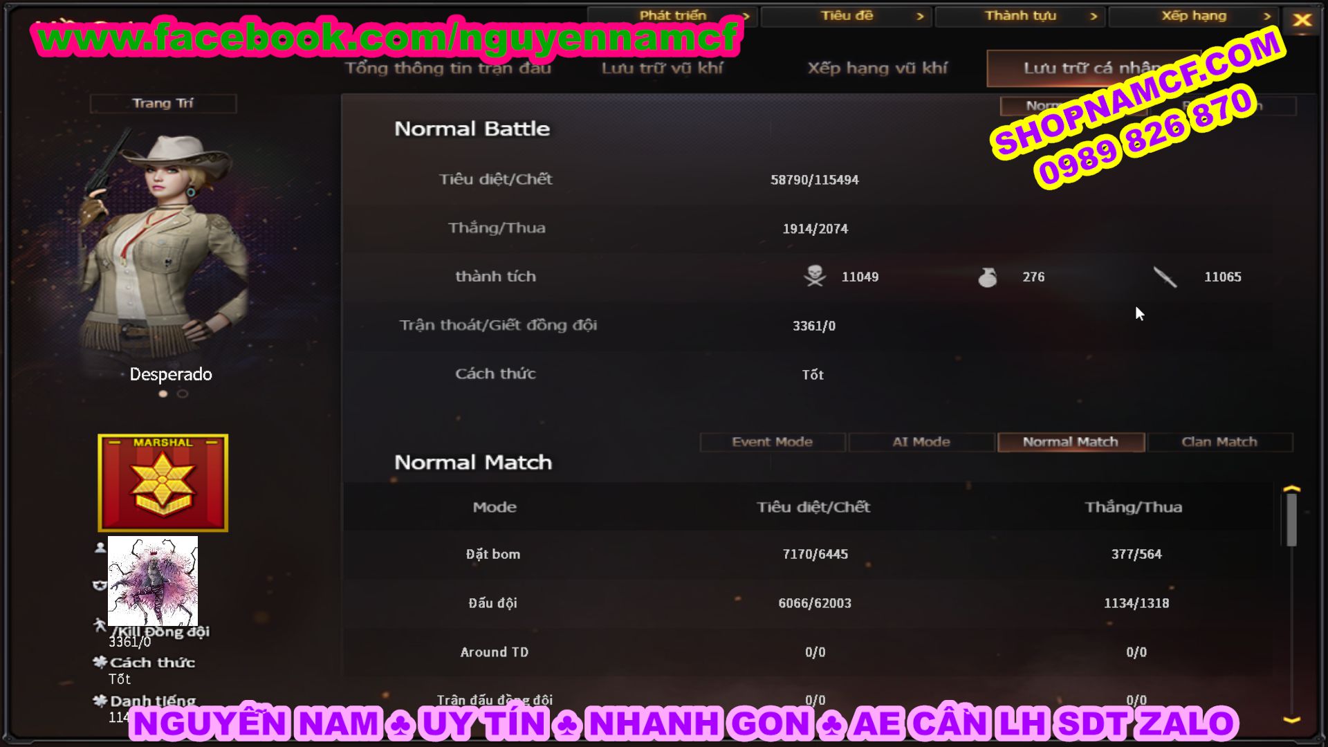 SHOPNAMCF.COM - Shop acc cf Chuyên bán ACC game Liên Quân, Đột Kích và có phần Thử Vận May nếu may mắn quý khách sẽ có cơ hội nhận được acc vip. Shop giao dịch hoàn toàn tự động 24/24, với đội CHKH nhiệt tình và thân thiện sẽ làm hài lòng quý khách.