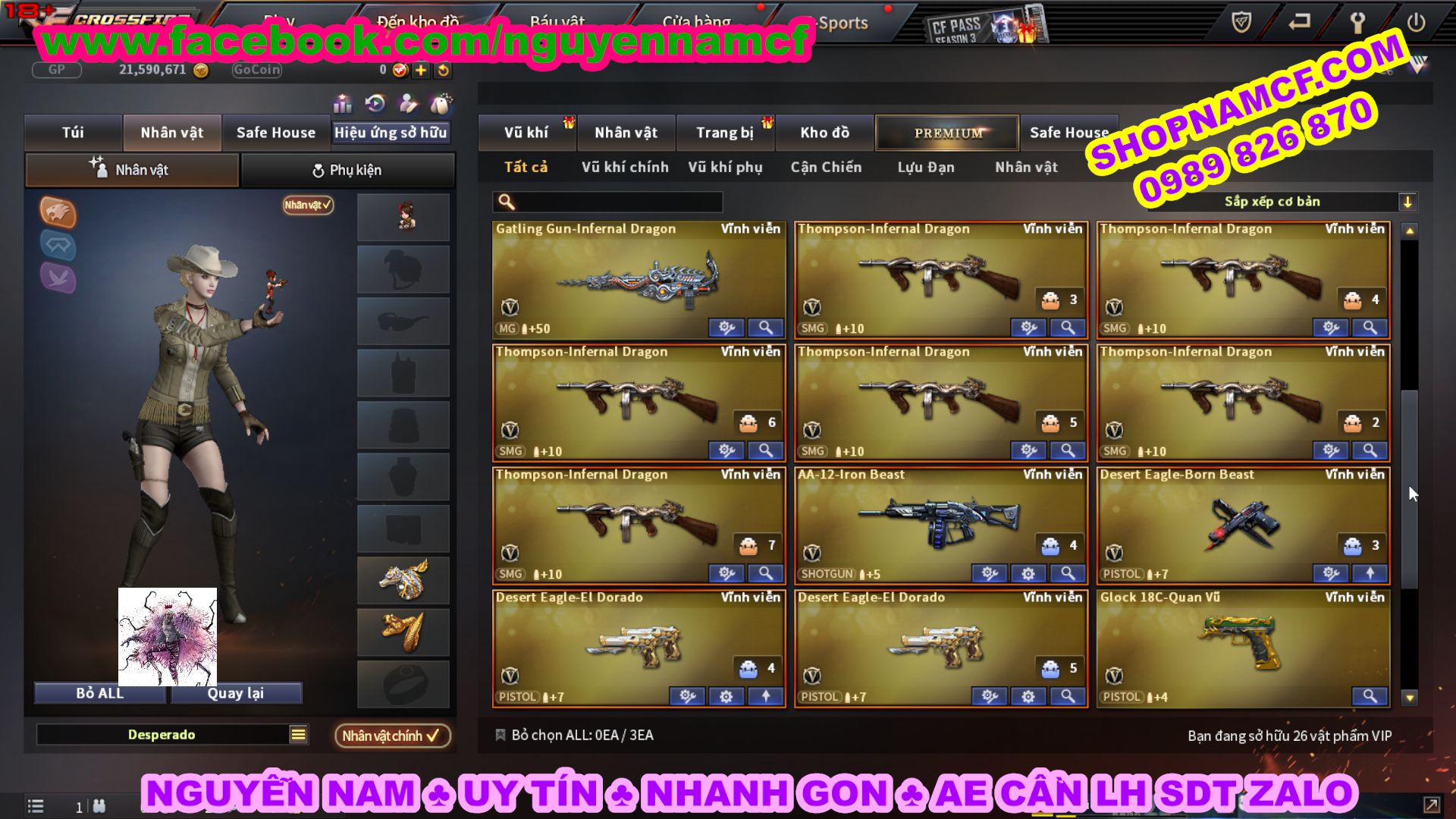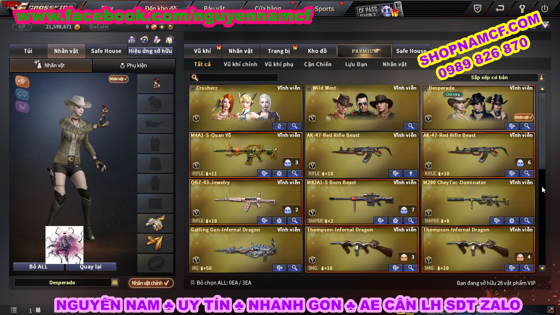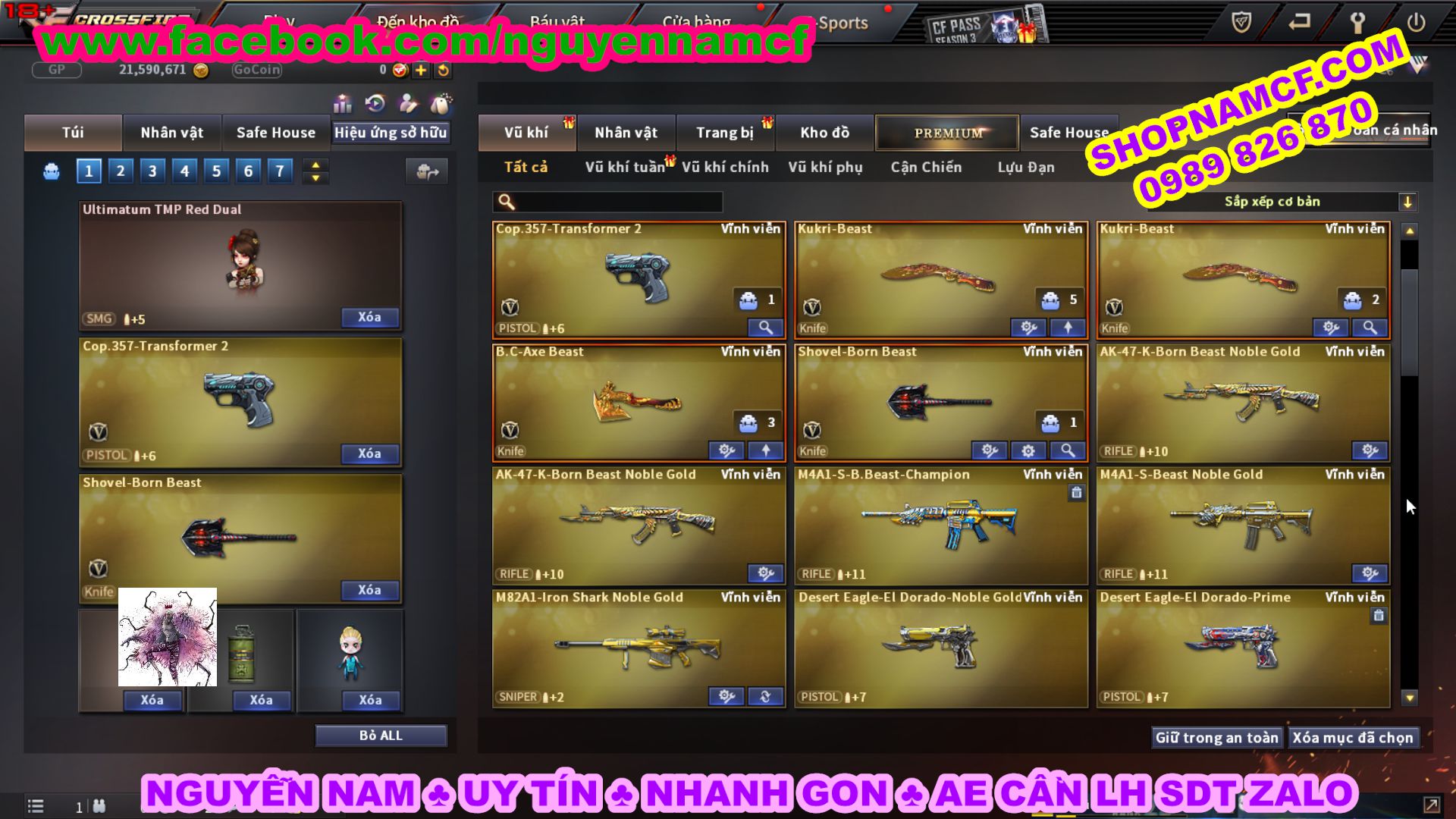SHOPNAMCF.COM - Shop acc cf Chuyên bán ACC game Liên Quân, Đột Kích và có phần Thử Vận May nếu may mắn quý khách sẽ có cơ hội nhận được acc vip. Shop giao dịch hoàn toàn tự động 24/24, với đội CHKH nhiệt tình và thân thiện sẽ làm hài lòng quý khách.