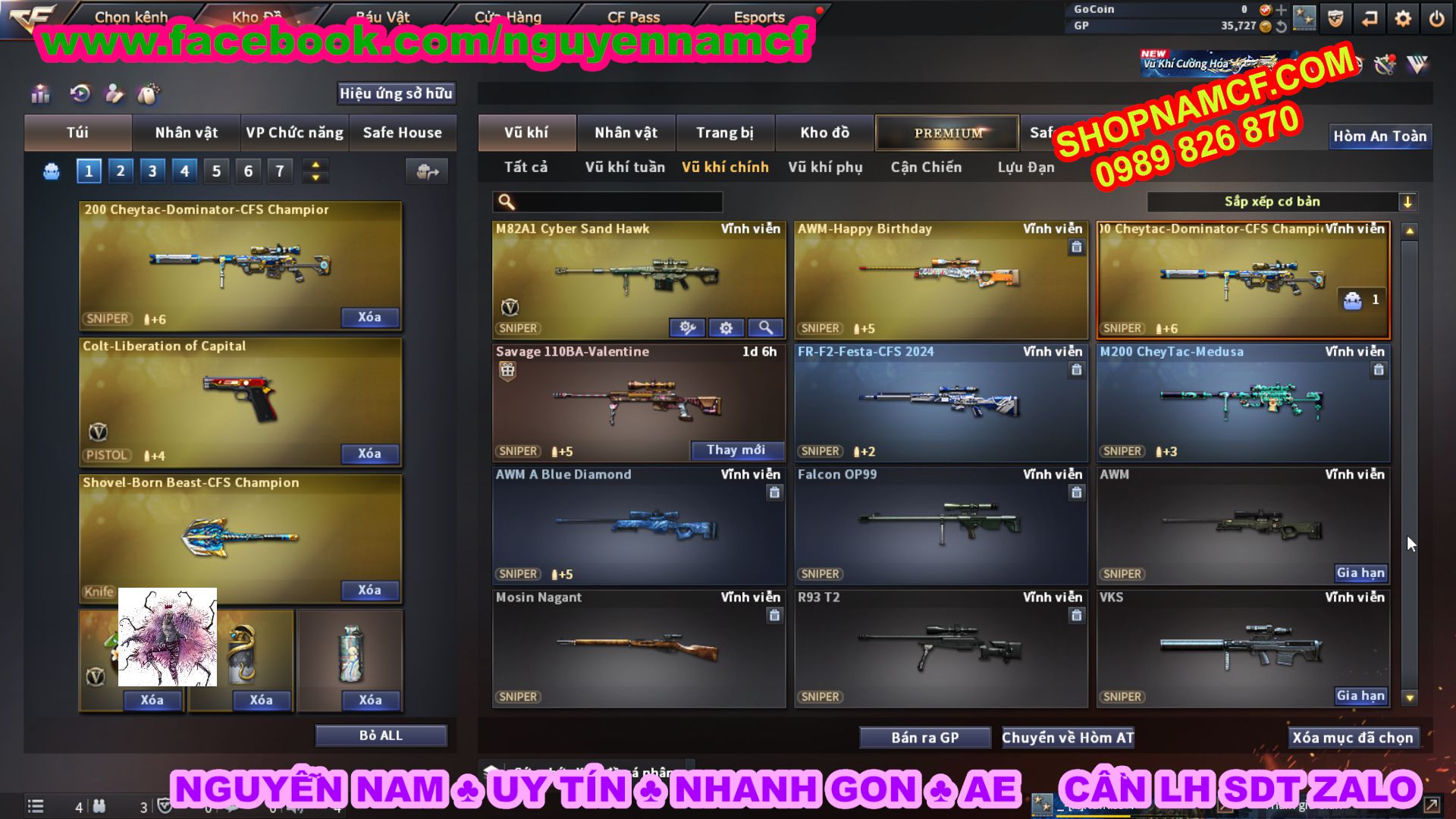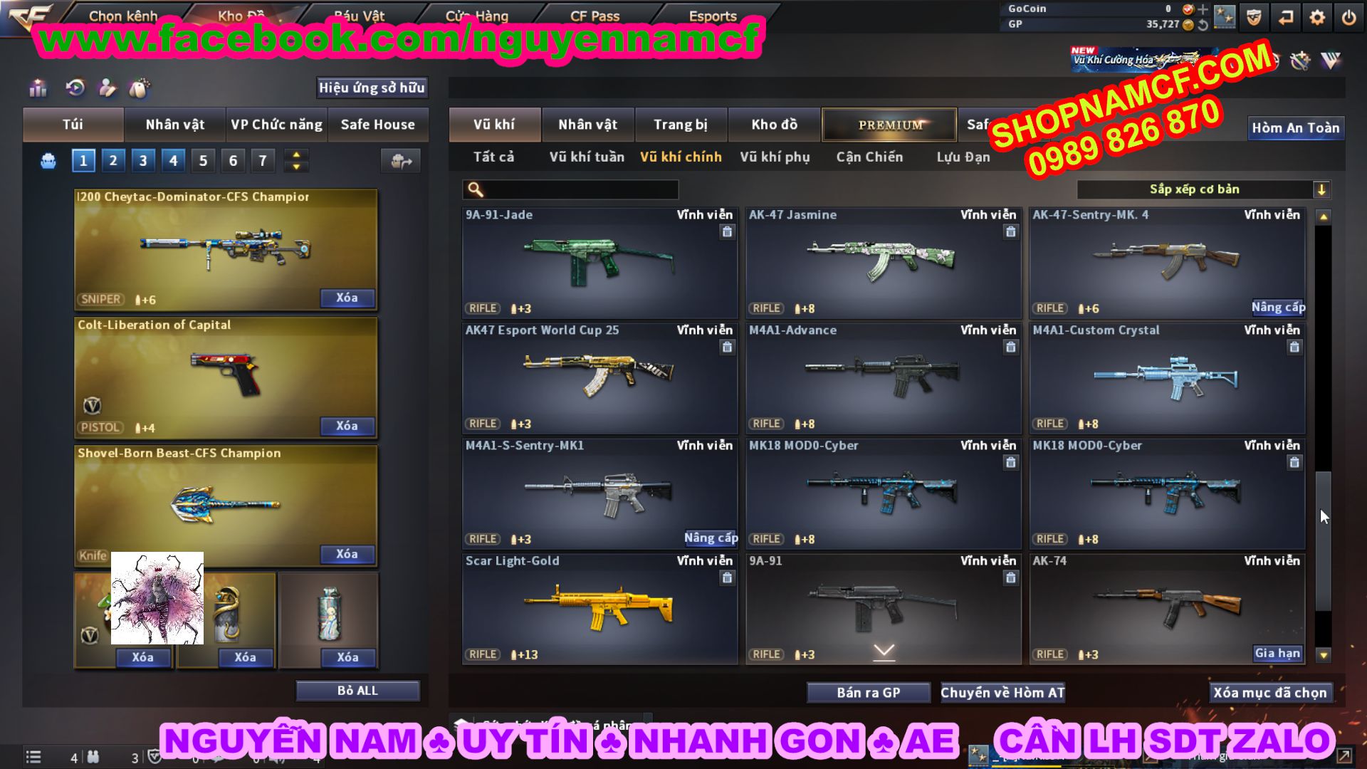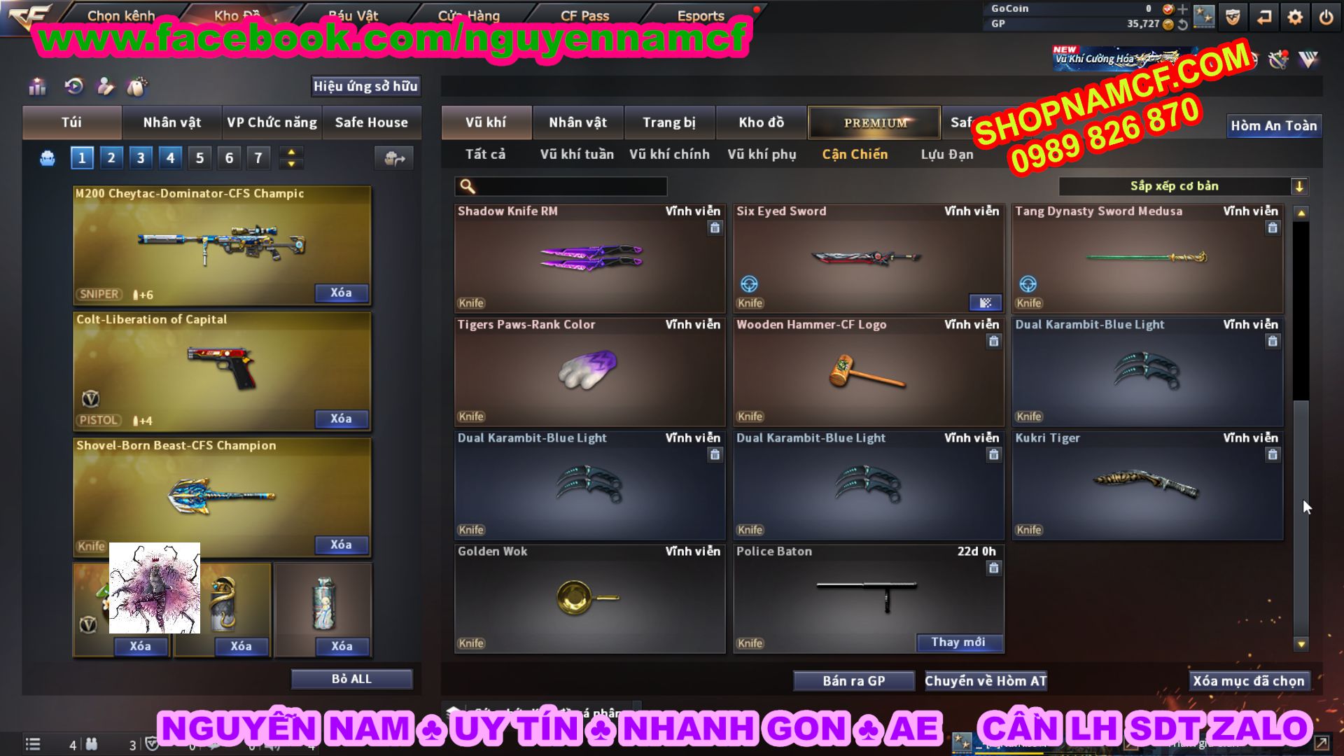 SHOPNAMCF.COM - Shop acc cf Chuyên bán ACC game Liên Quân, Đột Kích và có phần Thử Vận May nếu may mắn quý khách sẽ có cơ hội nhận được acc vip. Shop giao dịch hoàn toàn tự động 24/24, với đội CHKH nhiệt tình và thân thiện sẽ làm hài lòng quý khách.