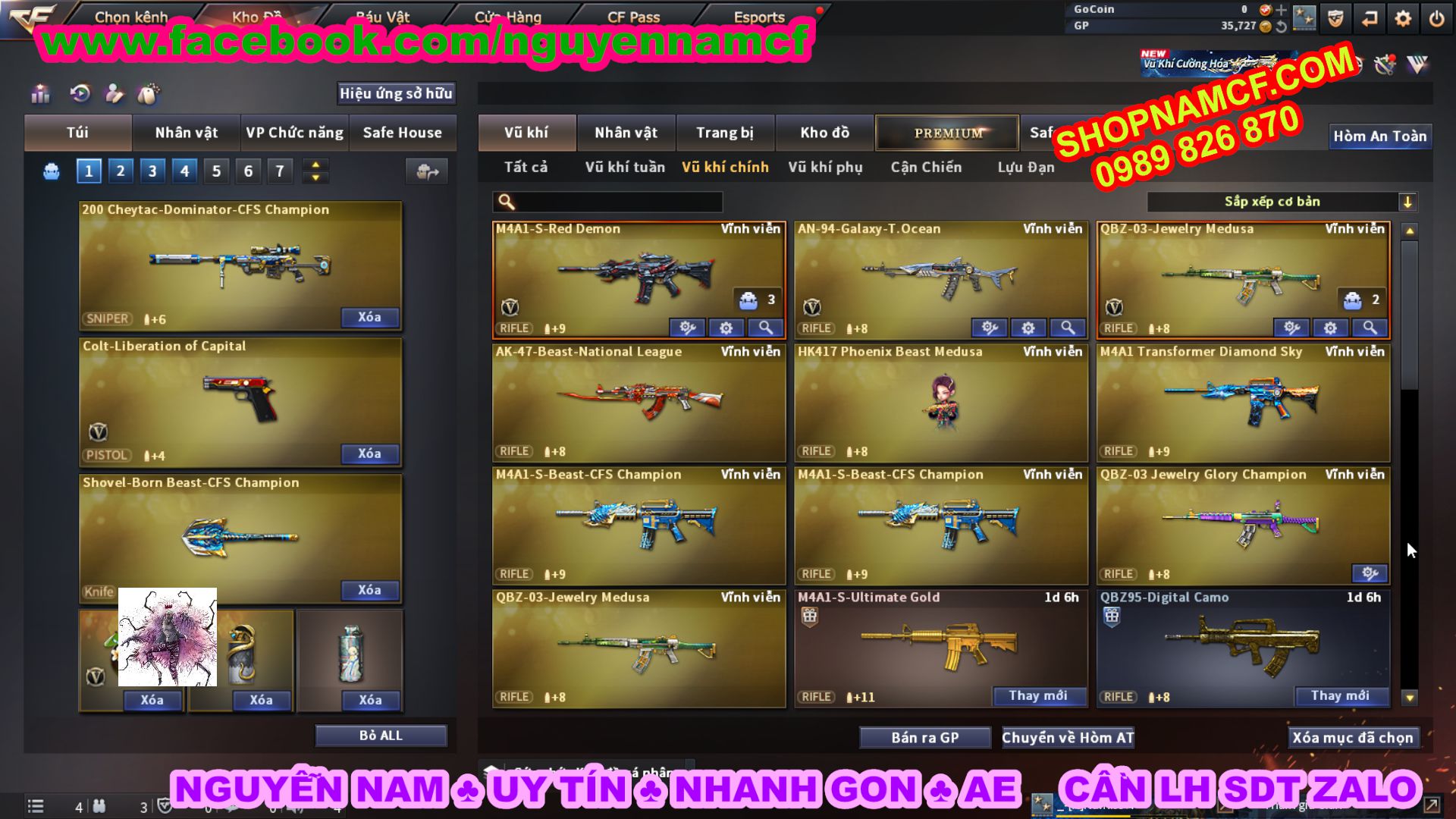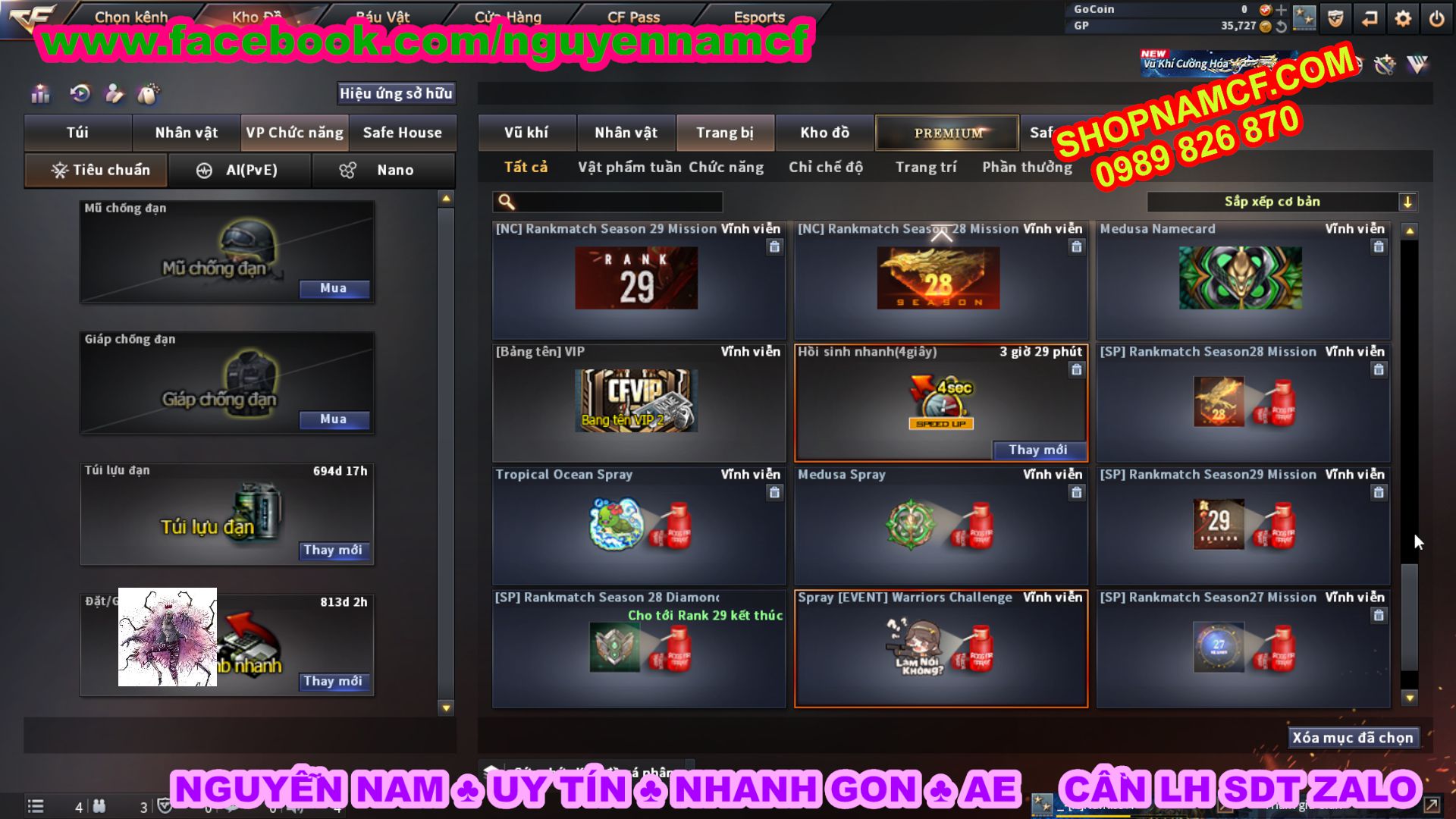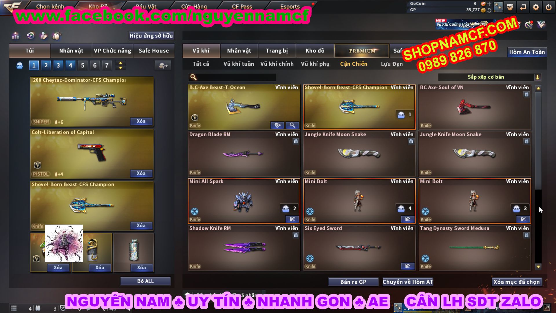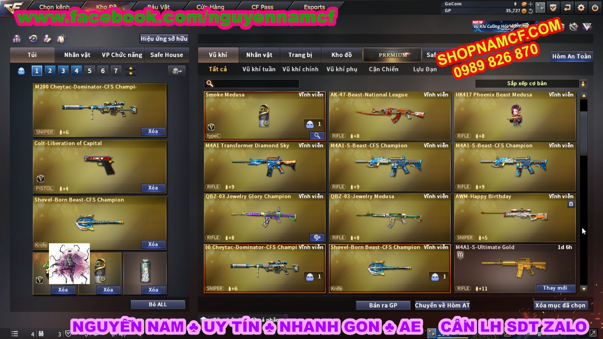 SHOPNAMCF.COM - Shop acc cf Chuyên bán ACC game Liên Quân, Đột Kích và có phần Thử Vận May nếu may mắn quý khách sẽ có cơ hội nhận được acc vip. Shop giao dịch hoàn toàn tự động 24/24, với đội CHKH nhiệt tình và thân thiện sẽ làm hài lòng quý khách.